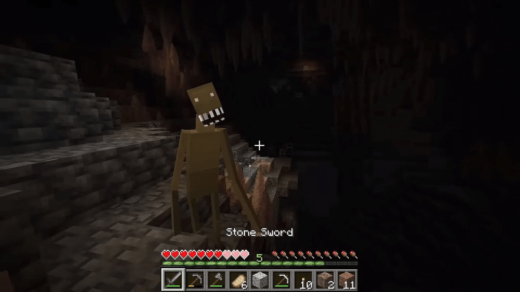 As you can see, there’s a big difference between the two. Added to this was the fact that since the game was released there have been ambient cave sounds (19 of them, in fact) that are actually quite creepy. This is where Gargin came in. Gargin’s idea was to create the origin for the cave noises, hence the name “Cave Dweller”. The cave dweller is a lanky humanoid creature with long arms and an open jaw with a taste for the players. Once you find a cave, it will randomly spawn and stalk you, looking at you from behind blocks. If you catch it might start a chase sequence (from other options) where it attacks and you have either run away or kill it. Now, killing the cave dweller is too easy, even though it deals a lot of damage. However, most players will choose the former. Gargin made the cave dweller to be even scarier by making the creature have the ability to bend down and run on all fours and even crawl through a one-block opening, which no other mob has ever had the ability to. Players tempted to hide in a tunnel and partially block it off will find themselves cornered by the cave dweller.